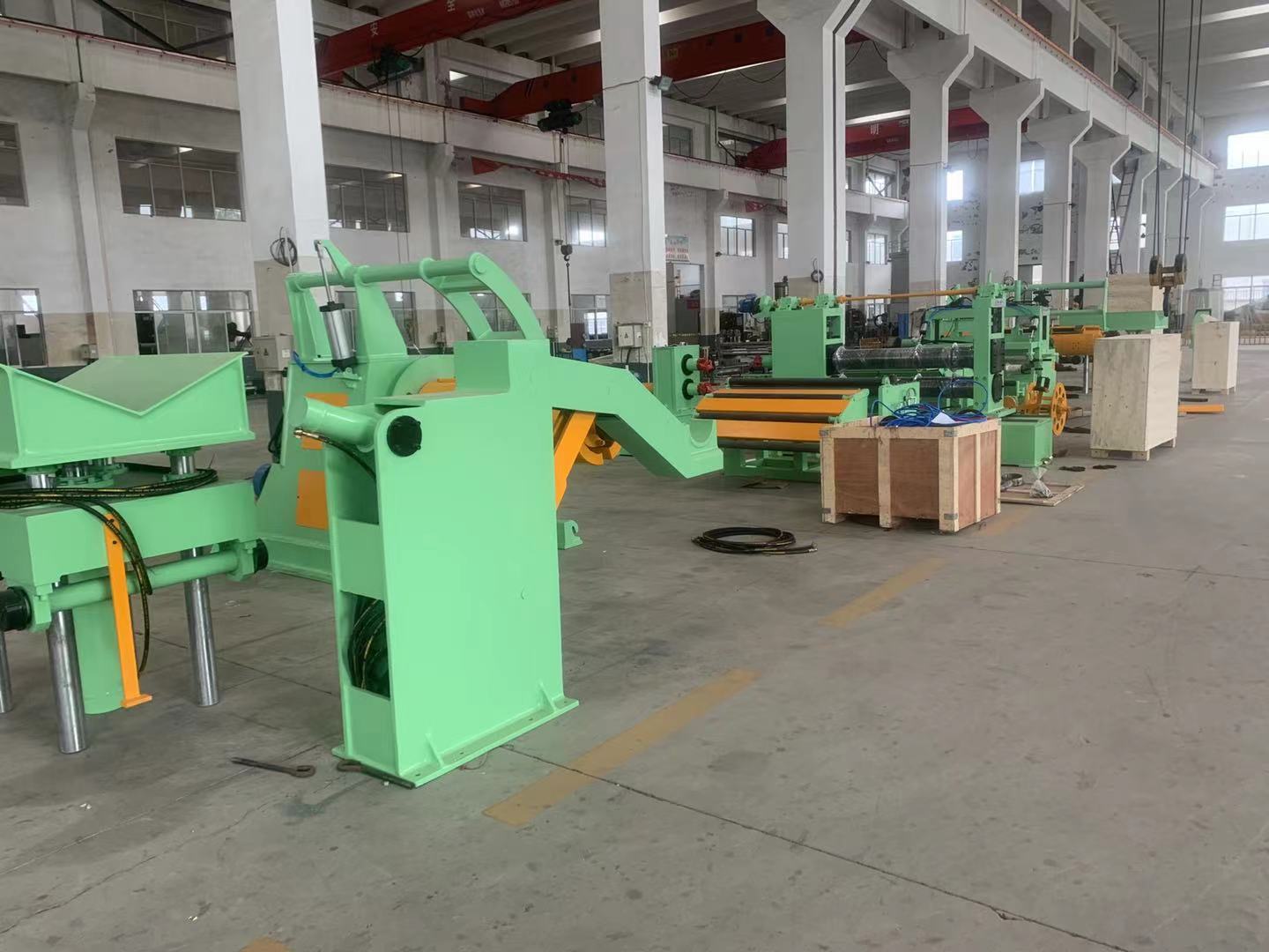 该生产线是将一定宽的金属卷料薄板在板宽方向纵剪成多条所需宽度的带材并进行成品工件的卷取的成套设备。